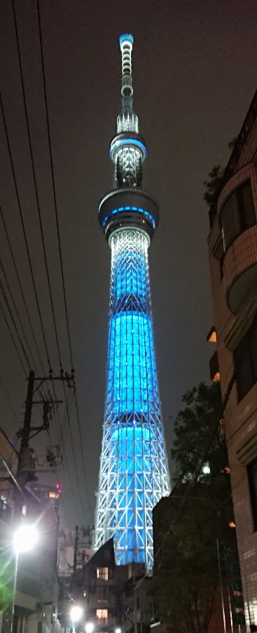 錦糸町からの帰りに見たスカイツリーは涼し気な色をしてました。