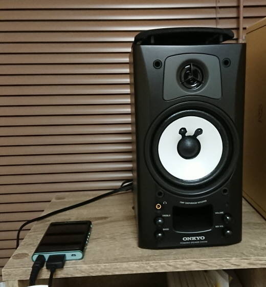 話は戻りますが、私も最近までスマホやウォークマンにイヤホンでしたが、すぐに耳が痒くなってしまうので、今ではもっぱらアンプ内蔵型のスピーカーをつないで聴いています。安い物ですが、狭い部屋ではいい音してます。(もちろん左側にももう1コあります)
